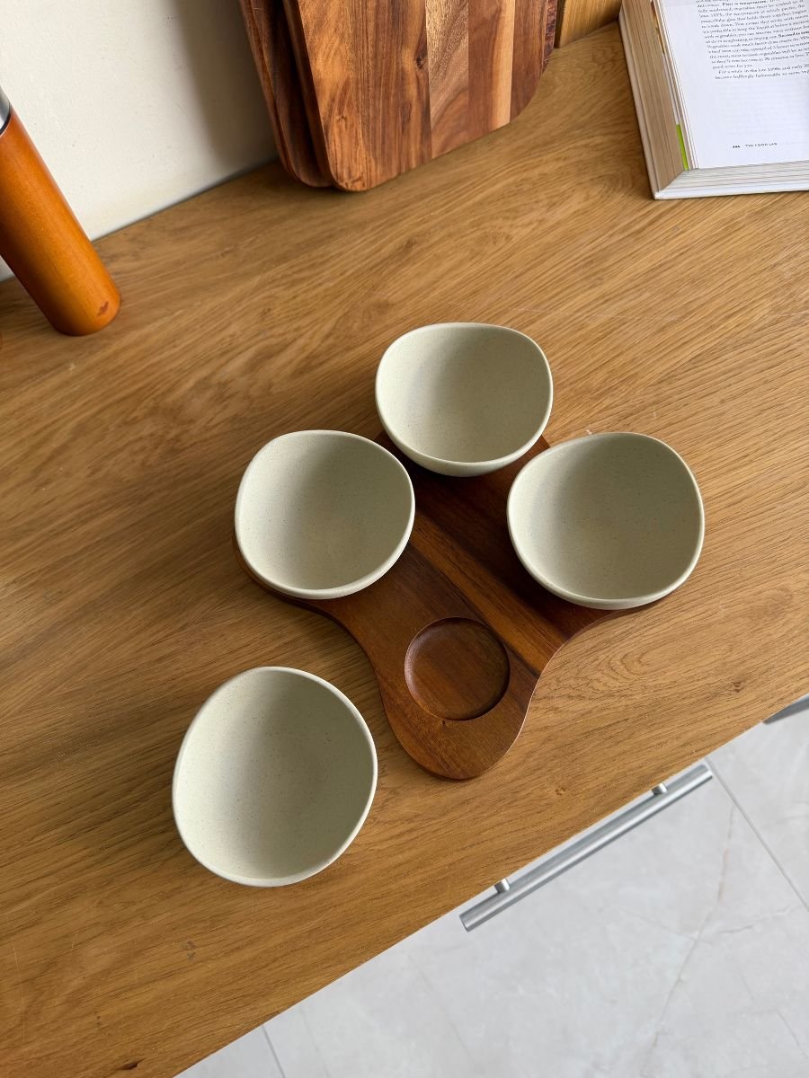 4-Piece Ceramic Serving Bowl Set with Wooden Tray