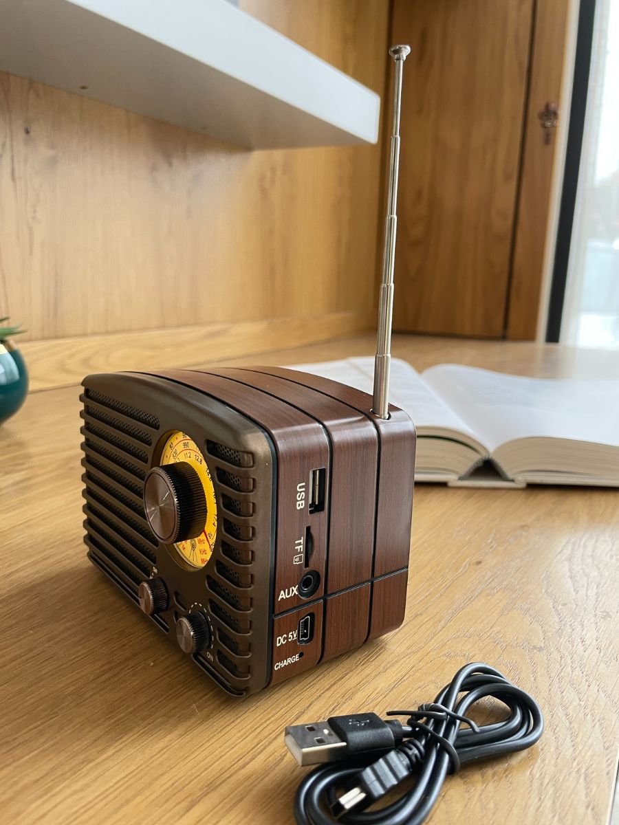 - Radio: Band switch + tuning window & pointer + high-sensitivity antenna