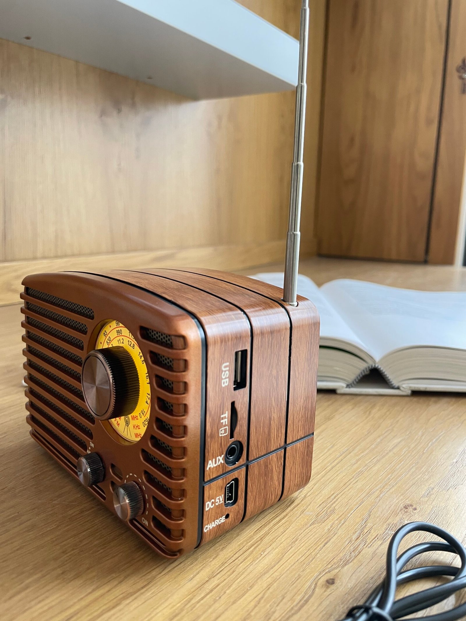 - Radio: Band switch + tuning window & pointer + high-sensitivity antenna