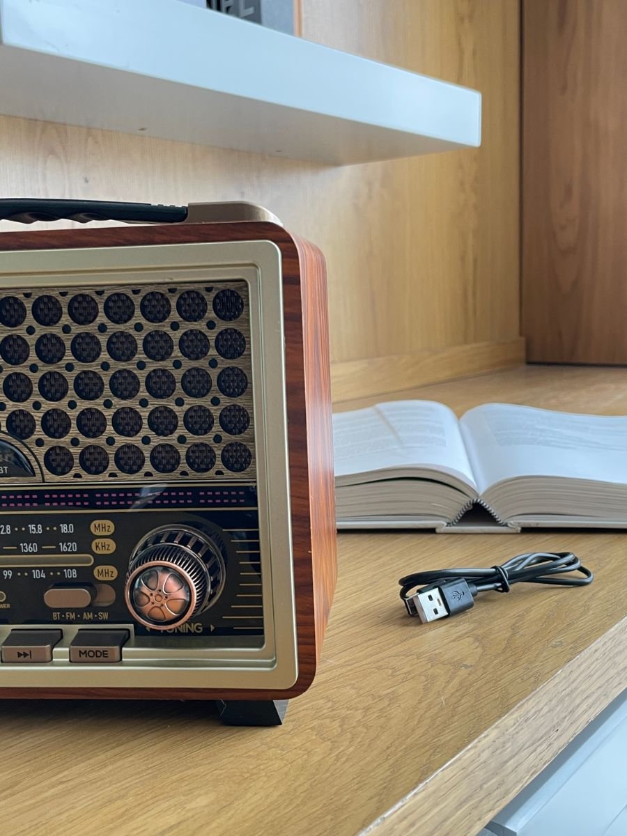 Portable Vintage Style Radio with Wooden Design