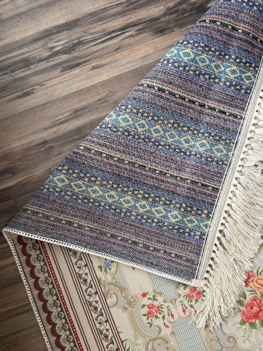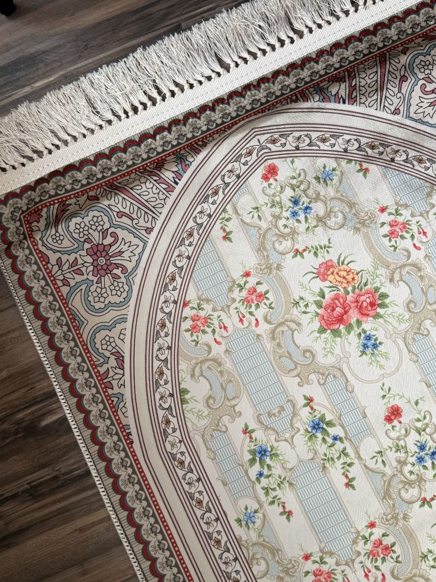 سجادة مزخرفة ورد زهري وازرق