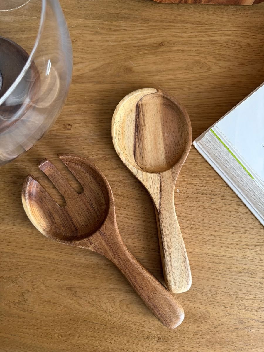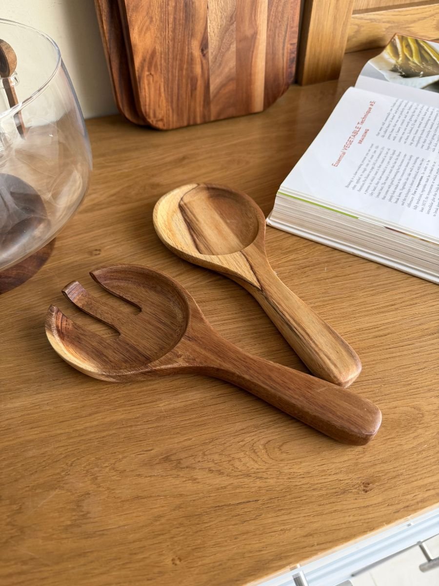 طقم ملاعق تقديم خشبية للسلطة (قطعتان)